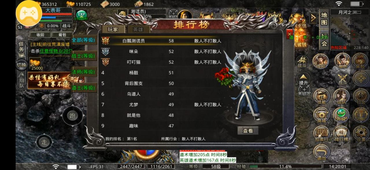 唯一零氪首充来源,50个怪,随机一个怪产出首充礼包。元宝大量,可以考虑鬼区后一人单打,简直爽歪歪,现在才开区,肯定人满为患啦,就打了一只,全是不绑定的元宝,可以交易的那种,搬砖的一定要去,开区即使充到V10,也不可能秒杀其他玩家!
