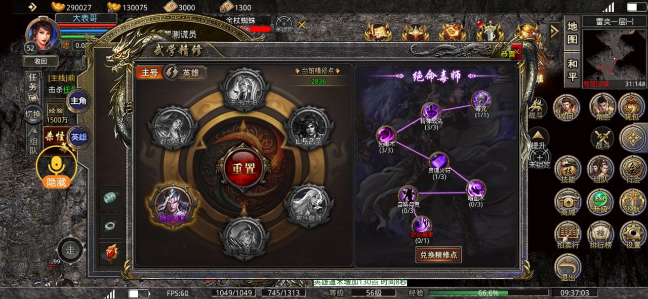 自动召唤英雄,英雄打怪躲避关掉,主角自动召唤月灵,自动施毒,幽灵盾,神圣圣甲术,无极真气。