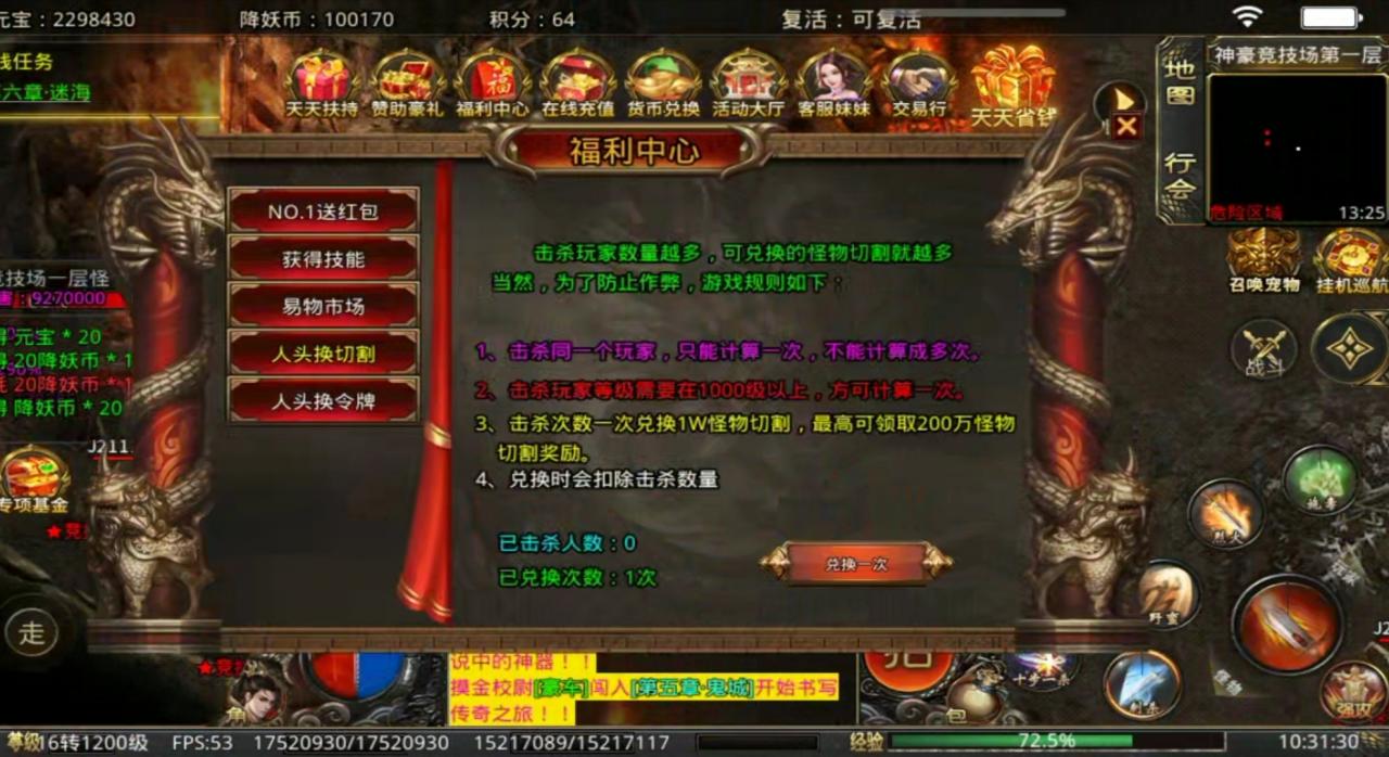 技能获得在福利中心,里面的狼和食人花需要在盟重野外击杀
