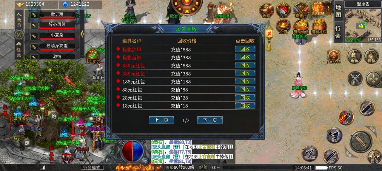 目前1270,如果合区不关闭首爆的话,现在估计能上1600左右,现在就只能靠爆充值红包了。