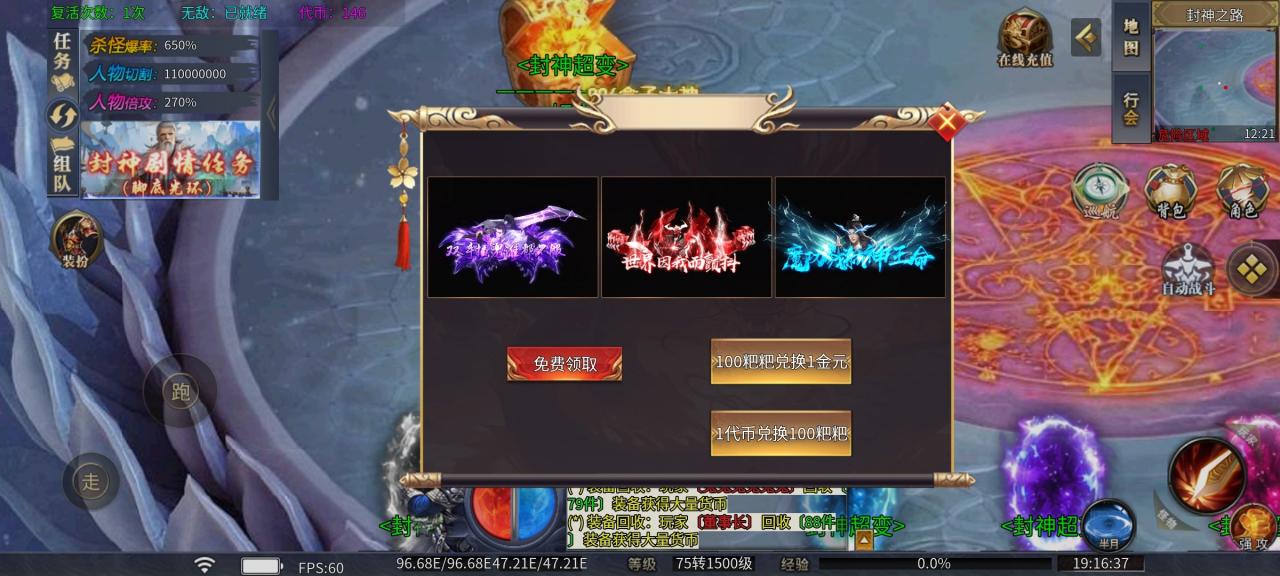 7、十五大陆封神之路地图,此地图非常重要,功能也非常强大,里面可以升级神幡、魂装、狗王、坐骑、步步生莲等重要功能;还能领取超神称号,还可以兑换金元及阶段性重要材料(粑粑),这里是你提升战力的关键,主要是散人玩到这个副大陆地图也不难,这绝对是第一个小目标,冲呀!
