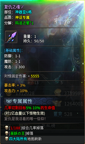 以上装备都比较好打,可以快速提升四大陆的清怪能力另外如果没出骷髅斗篷的话扛不住白怪,如果追不出来推荐下面回血装备