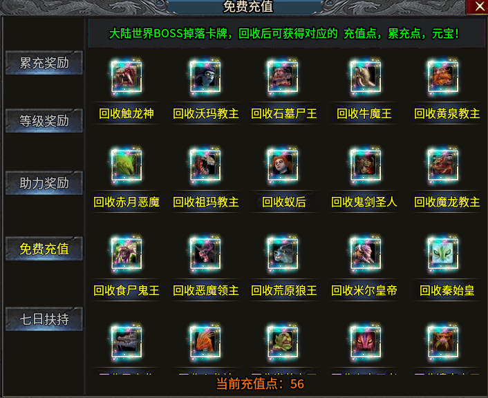 不管是充值还是做任务、打装备得的充值,全都可以来领取累充奖励的!