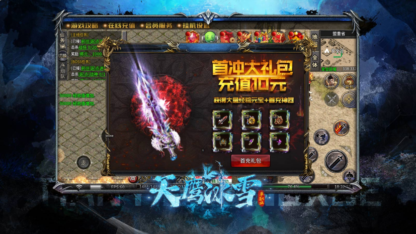 天鹰冰雪,本服为单职业冰雪版本,开放4个大陆,青春不老,再战沙城。