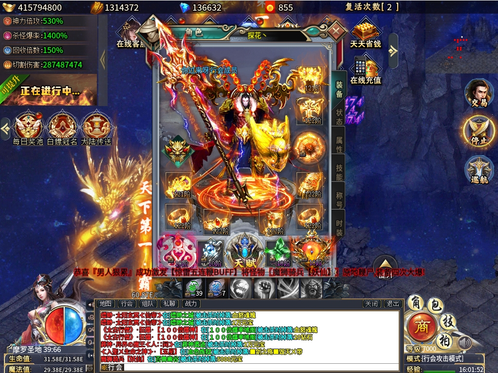 6、皇城争霸、通天宝塔、狂开宝箱、每日领奖等众多玩法;